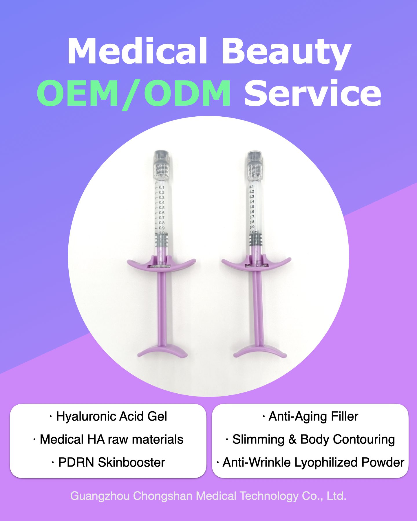 Guangzhou Chongshan Medical Technology Co., Ltd. is a high-tech company specializing in the development, testing, manufacturing and registration of medical beauty products.